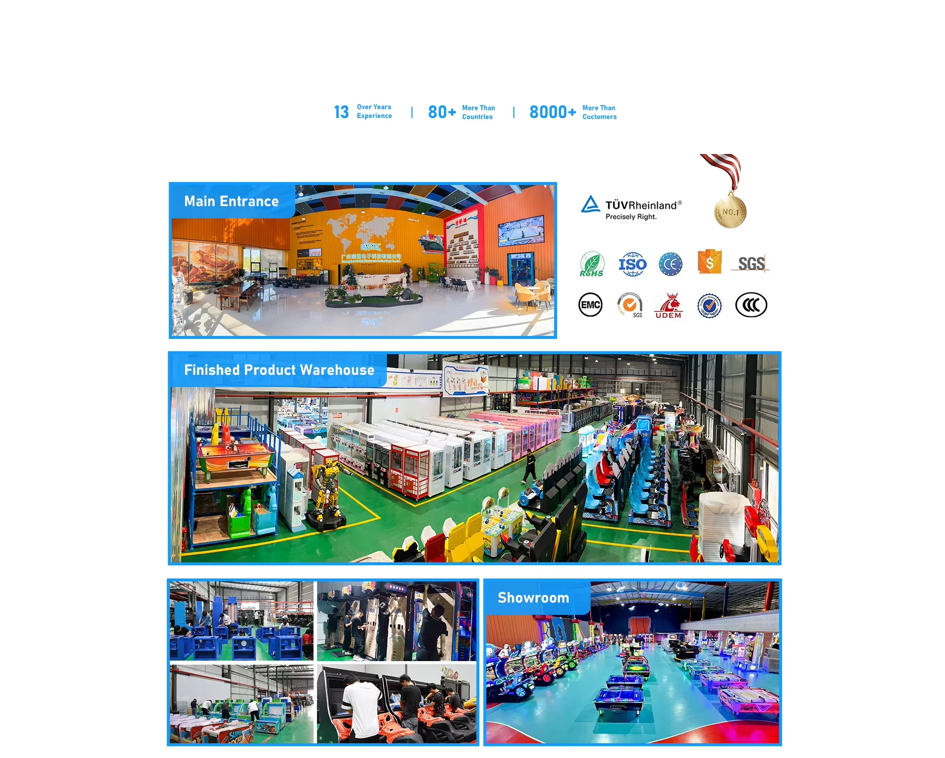 Our products include children's game machines, shooting arcade machines, basketball machines, claw machines, air hockey, sports game machines, racing game machines, kiddie rides, and soft playground equipment with good quality and advanced technology. We have our technical R&D department, experienced sales team, patient after-sales team, and diligent production team. We aim to offer you no hassle one-stop service! Well-decorated showroom is waiting for your experience. Trust EPARK, let's create profits together!